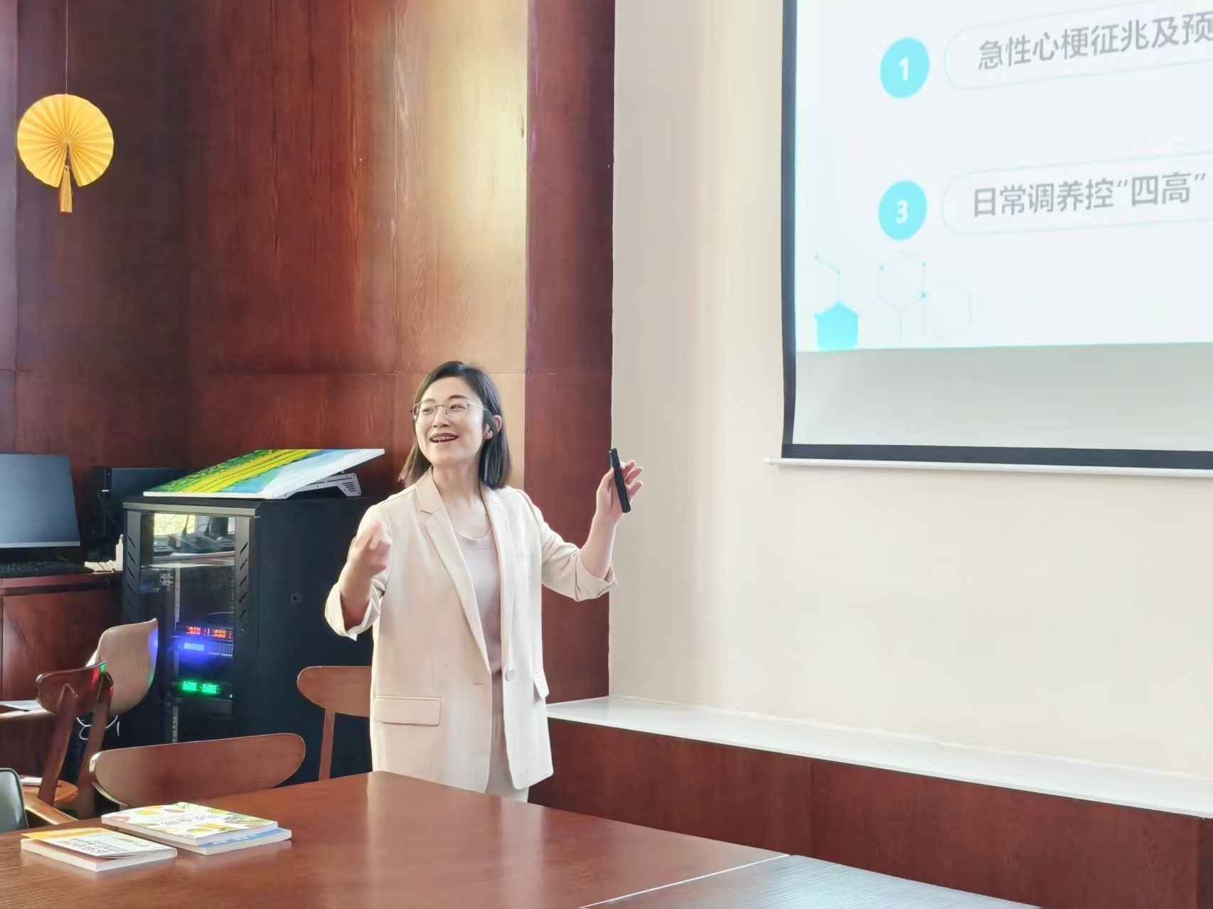 讲座现场,农工党景德镇市妇幼保健院支部副主委、医院儿童保健科副主任医师阴娜带来干货满满的健康科普分享。本次讲座以“调四高、养心脉、防意外”为核心主题,精准聚焦中老年群体高发的慢病问题与日常健康隐患。结合中老年群众的生活习惯与身体特点,用通俗易懂、深入浅出的语言,从日常饮食、科学运动、规律睡眠、情绪调节四大生活维度,细致讲解高血压、高血糖、高血脂、高尿酸“四高”慢病管控技巧、心脑血管养护方法,以及居家、户外常见突发意外的预防和应急处理方式,破除群众日常养生误区,传授实用、可落地的健康养护知识。