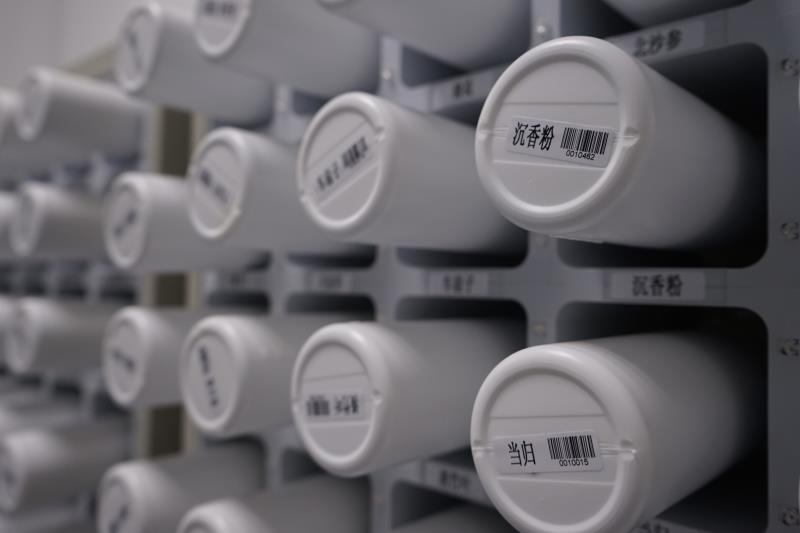 我院中药配方颗粒为全成分提取,能够最大程度保留原有中药饮片全部有效成分,满足临床医师辨证论治、随症加减的需要。全自动中药配方颗粒调配系统启用后,医生在组方过程中只需要根据患者病情开具中药饮片和量组方。该系统可自动进入处方信息核对,传输感应灯定位,快捷上药后,精确计算其对应的中药配方颗粒重量,自动称重,混合均匀,储放于药用包装容器内并自动密封。该系统发药准确,操作简单,处方调配效率高,不仅缩短了患者取药等候时间,也提高了药房人员的工作效率,且病员携带和服用方便,患者每次用药只需直接从药盒中取出某一小格子内已调配好的中药颗粒放入适当容器内加入开水溶解后即可服用。不再像从前传统中药一样需慢慢煎药,节省大量时间。